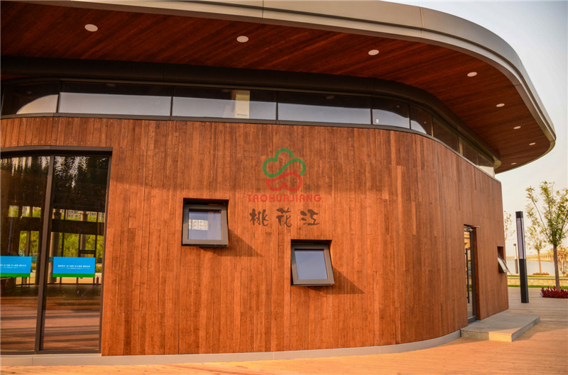 該公園東側(cè)為海濱高速公路,西側(cè)為濱海旅游區(qū)辦公區(qū)域,北臨海博路,南至規(guī)劃海旭道,是從城市空間到海邊的過渡型景觀。項目的建設(shè)是在尊重歷史和現(xiàn)實條件基礎(chǔ)上,結(jié)合先進的生態(tài)建設(shè)理念,大面積運用了桃花江竹材科技的環(huán)保竹材作為主體裝飾材料,公園內(nèi)的主體建筑,采用桃花江竹材科技的全竹裝飾來裝潢,高炭防腐竹材做外墻和吊頂裝飾,色澤明亮,渾然一體,既現(xiàn)代又傳統(tǒng)的竹材裝飾風(fēng)格為公園營造自然、郊野景觀氛圍,為市民提供一個全新的休閑娛樂場所。